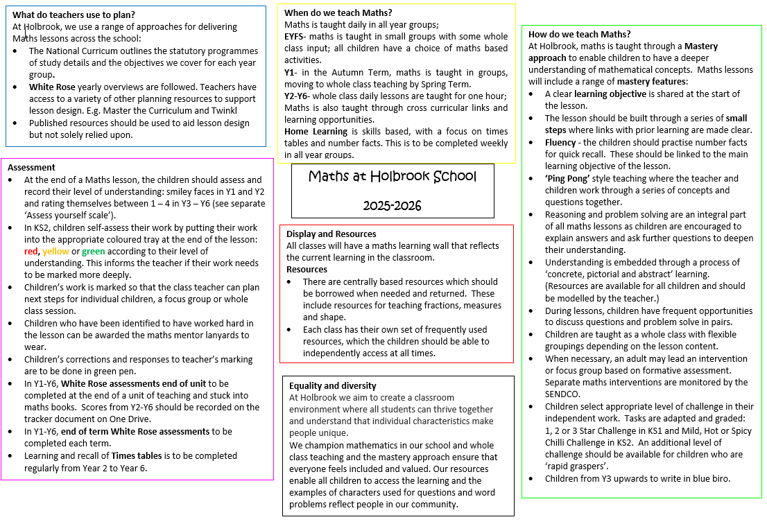 At Holbrook Primary School our pupils achieve well, are highly confident in maths and we strive for them to: